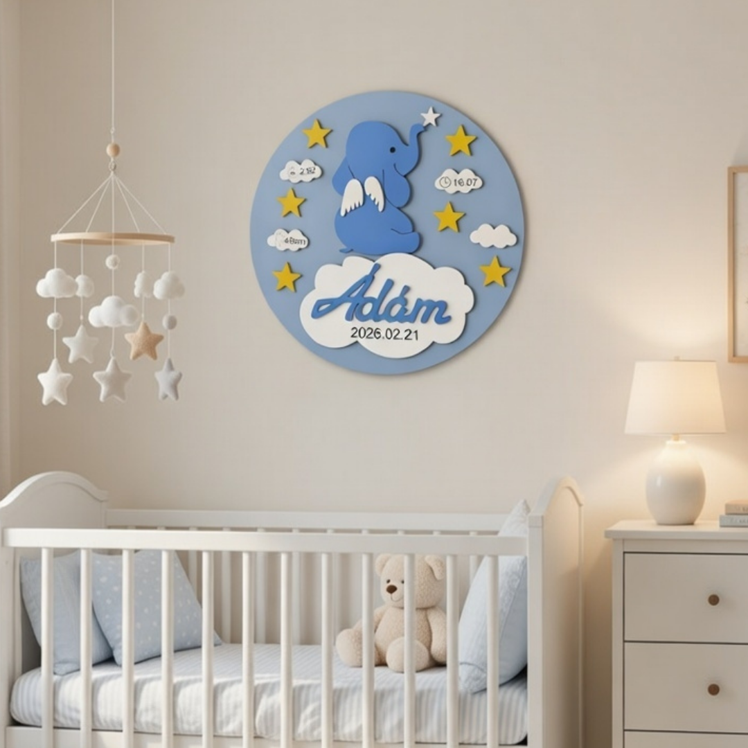 Bine ai venit, îngeraș – placa personalizată care păstrează amintirea nașterii pentru totdeauna! 🐘⭐